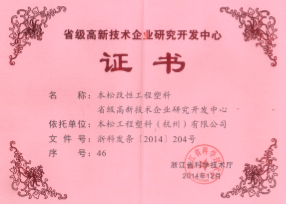 Award "Provincial High-tech Enterprise Research and Development Center"