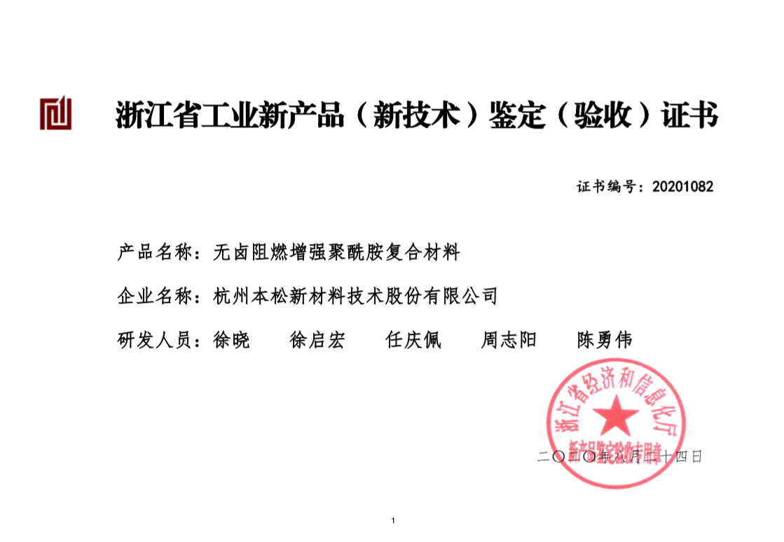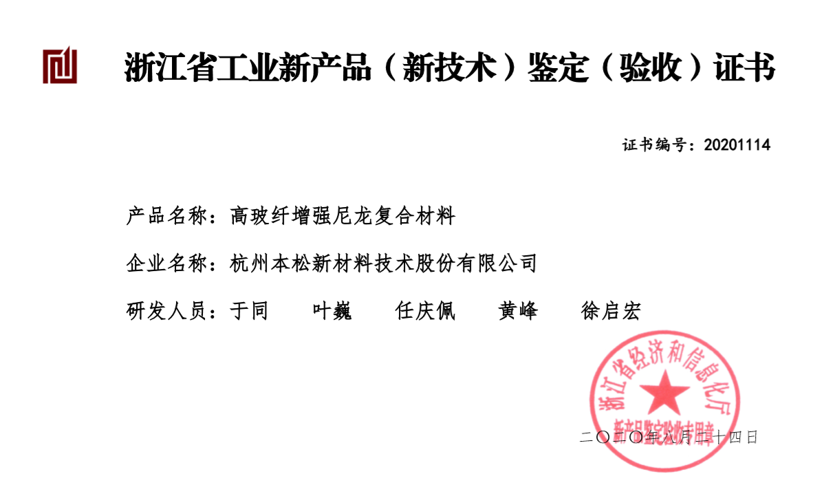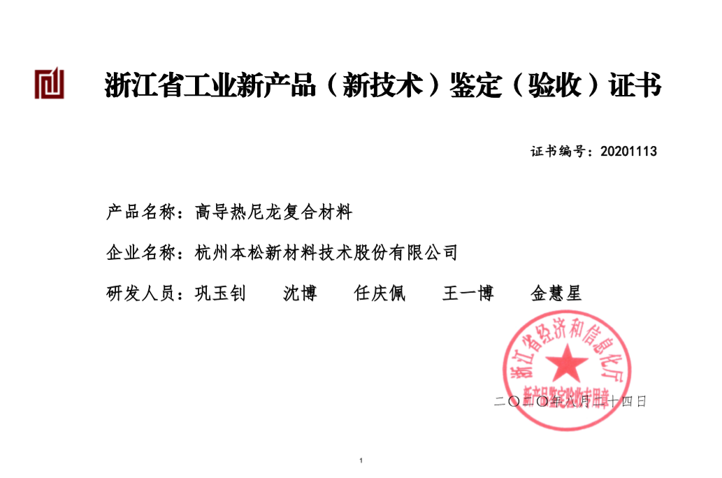"High thermal conductivity nylon material" has been identified as the first batch of new materials in China Award "Provincial intellectual property demonstration enterprises" and "Provincial enterprise technology center"