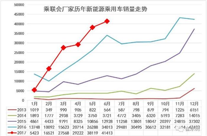 目前,新能源汽车的发展保持了一个比较好的势头,根据乘联会厂家数据,17年6月新能源乘用车销量达到4.14万,环比5月增长9%,同比增速22%。17年新能源乘用车保持月度环比持续向上态势,从1月的0.65万到3月的2.75万,新能源乘用车延续月递增1.1万的加速上升态势。4月新能源乘用车的销量环比增长放缓到增长0.17万台,5月的环比增量达到0.9万台,6月环比增长0.3万台。1-6月新能源车累计销量增长31%,未来新能源市场是可期待的较快增长。